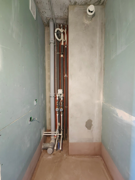 Инженерная подводка должна быть на стене слева, за стиральной машиной,а не сбоку от неё. В таком случае будет щель около 8 см - пылесборник.